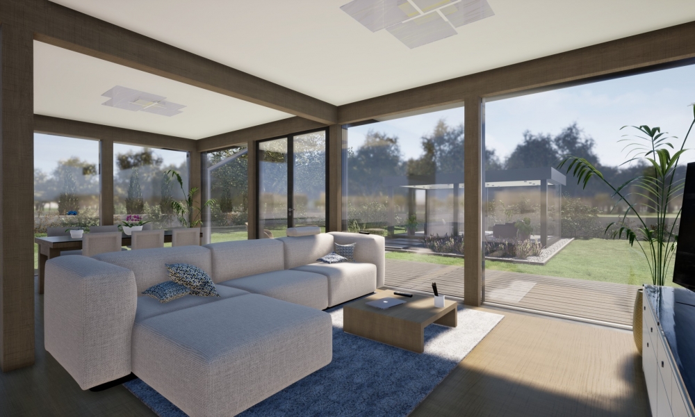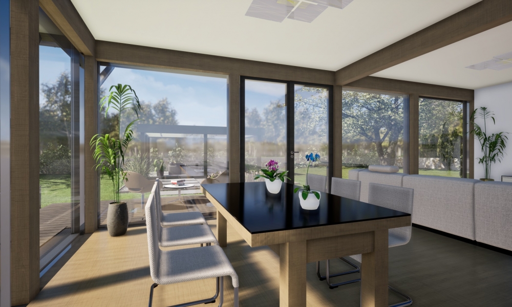 El diseño conceptual de la VITA NOVA Classic 155 está pensado como una casa amplia y luminosa para la familia, que disfruta tanto de la planta baja como de la primera. En la planta baja se encuentra un lujoso salón, complementado con una zona de trabajo y una cómoda despensa escondida junto a la cocina.
