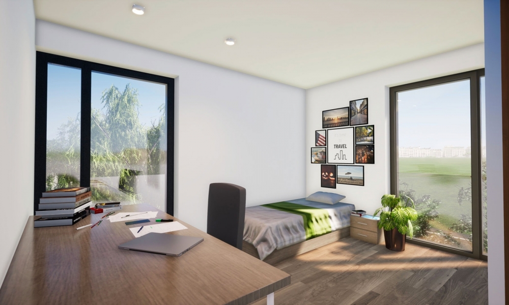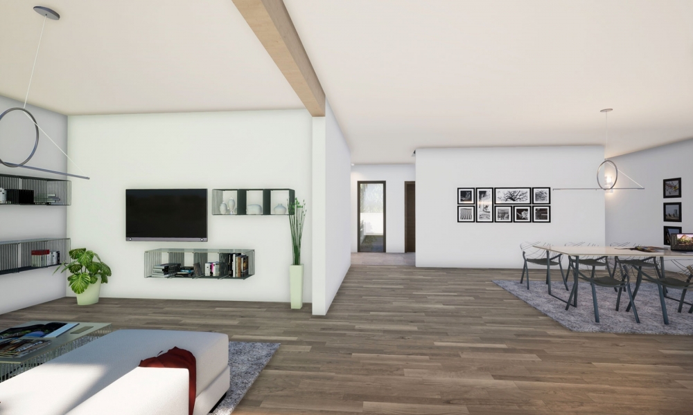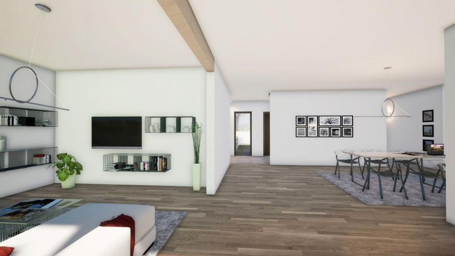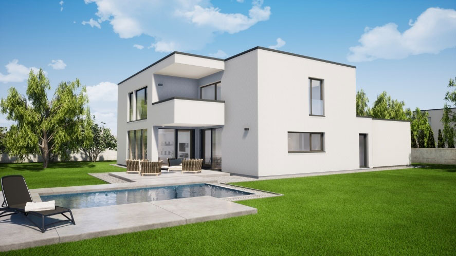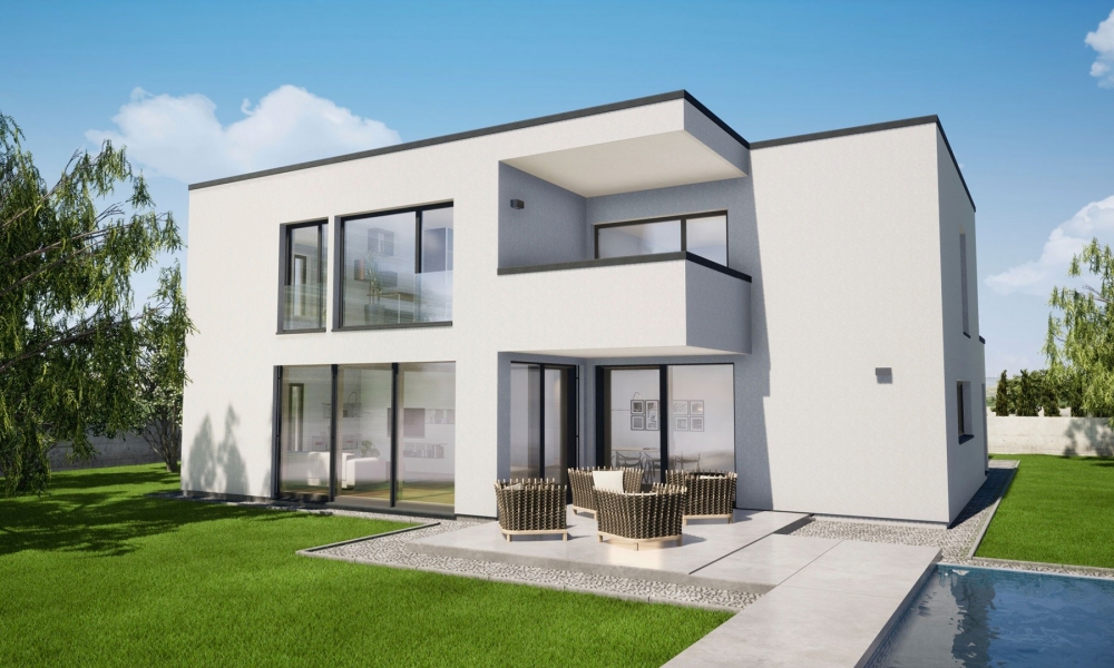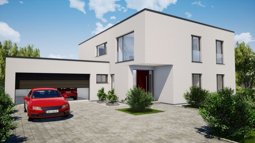 El diseño conceptual VITA NOVA Modern 287 representa una gran casa familiar de dos plantas completas. En la planta baja hay un despacho luminoso, una gran sala de estar abierta con comedor y cocina y una despensa. También hay acceso al garaje a través de la sala técnica. En la planta primera encontramos tres amplias habitaciones, un armario y baño adicional y una suite con su propio armario y baño y acceso a una terraza cubierta.