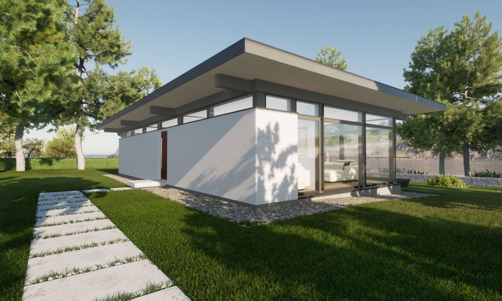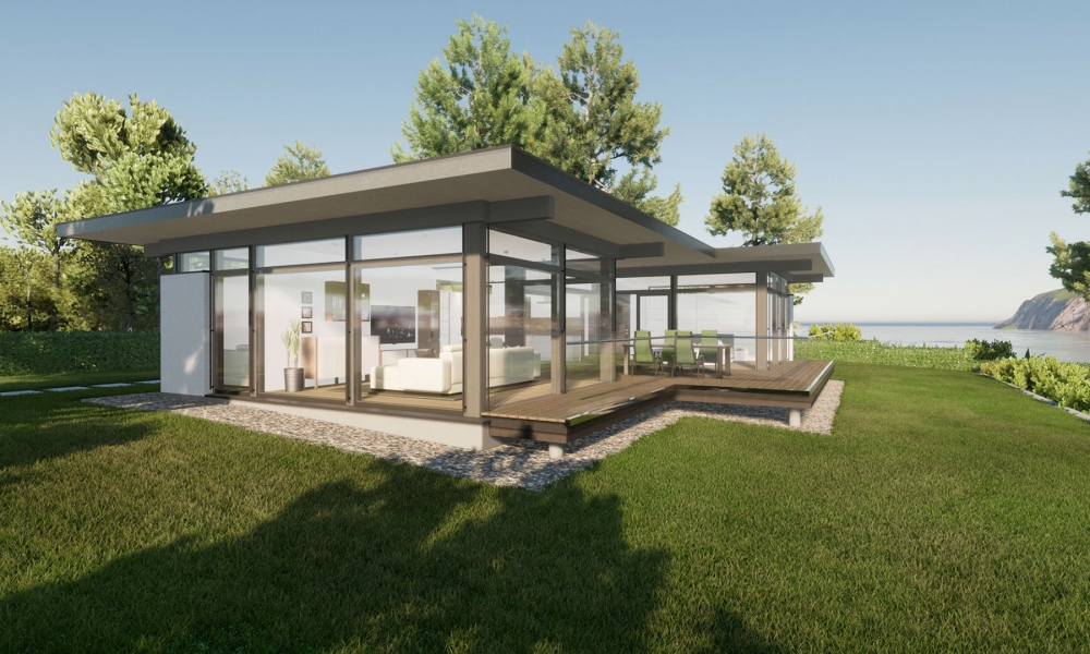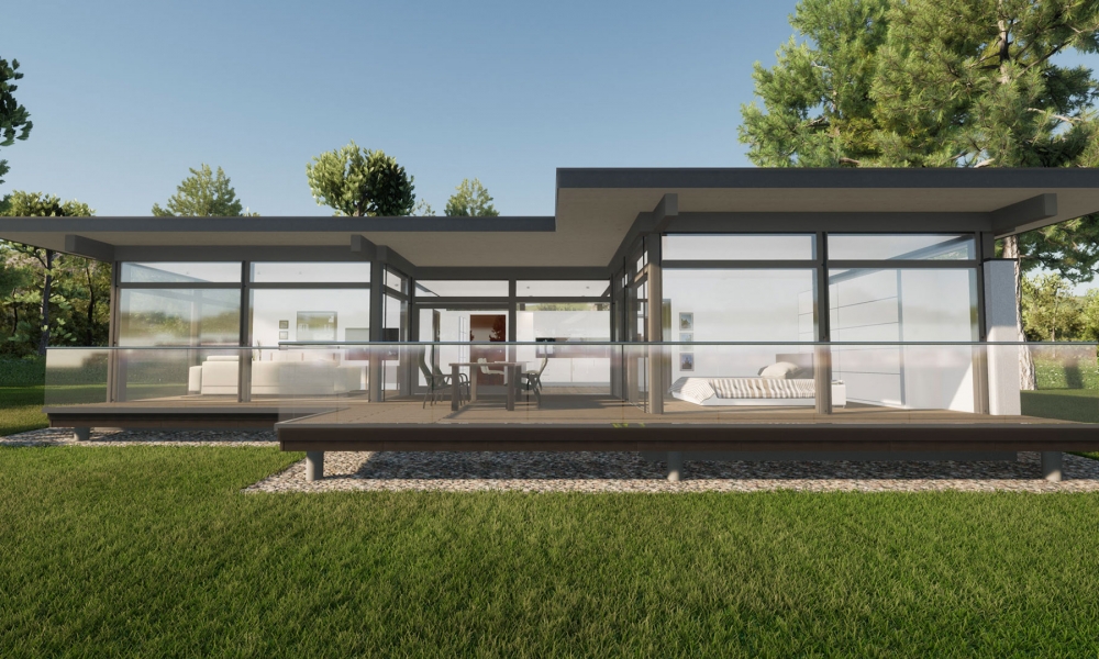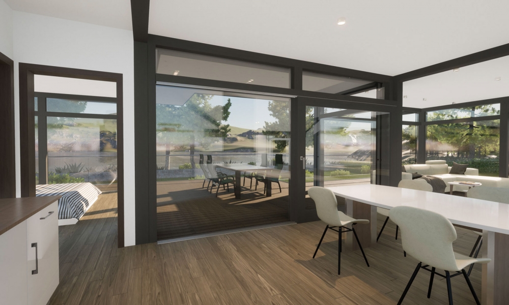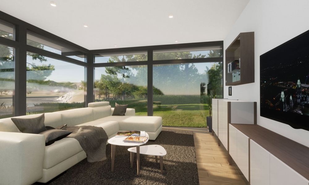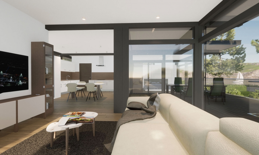 El concepto de VITA NOVA Urbana 95 es un punto de partida adecuado para todos aquellos que quieren casas pequeñas y muy luminosas. El diseño incluye un dormitorio y un baño, además de un sala técnica y un armario. La sala de estar abierta con comedor y cocina se abre a través de grandes superficies de vidrio a una gran terraza al aire libre parcialmente cubierta. Para trabajar sin interrupciones desde casa o desde una habitación de invitados más pequeña, también instalamos un despacho en el diseño.